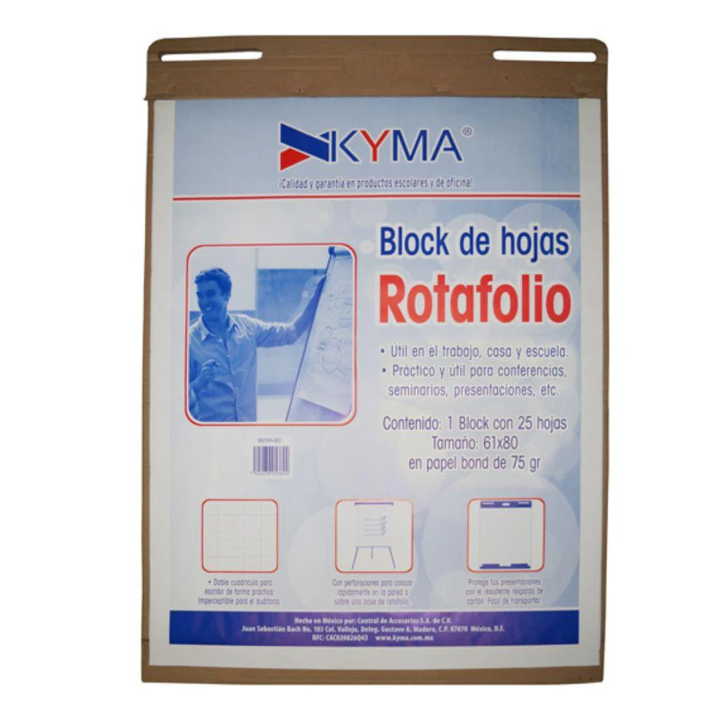 El Block Rotafolio Kyma es perfecto para exposiciones, aulas o reuniones. Con 25 hojas blancas y cuadrícula de 7mm, ofrece espacio amplio para notas y dibujos. Incluye perforaciones para colgar y respaldo de cartón reforzado.