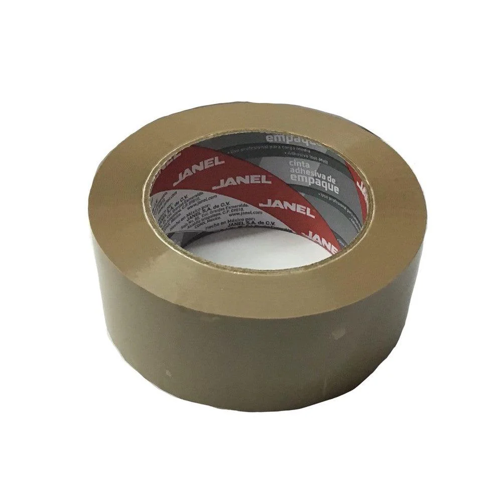 «description»: «Cinta de empaque Janel 100 color canela, 48mm x 150m. Paquete de 6 rollos. Con adhesivo hot-melt de alta resistencia. Ideal para envíos y almacenes.»,