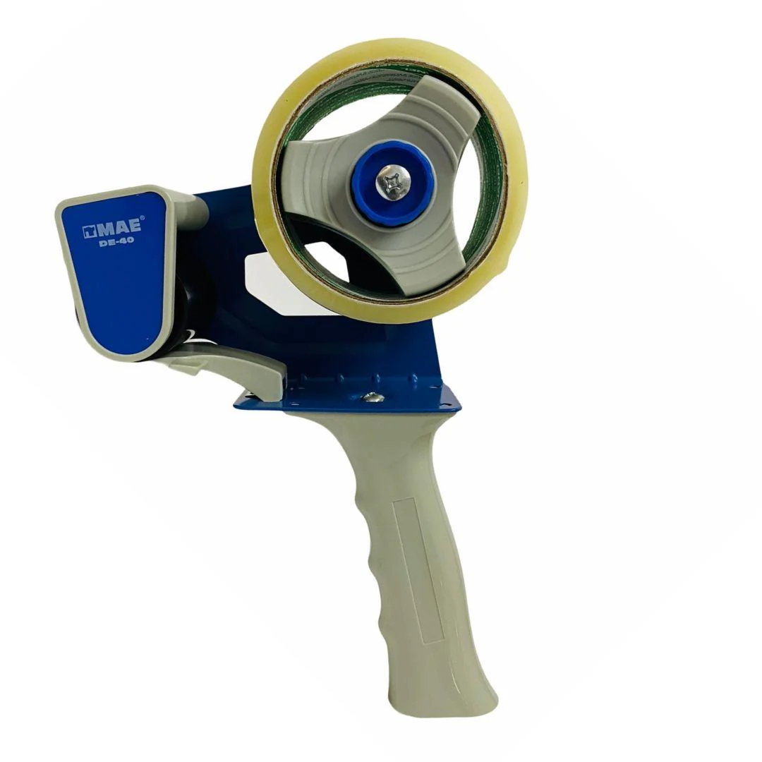*Para cintas de 2″ de ancho y 3″ de diámetro. *Mecanismo de ajuste. *Acero inoxidable. *Plástico resistente. *Hojas de doble filo reversible * Aplicador de presión