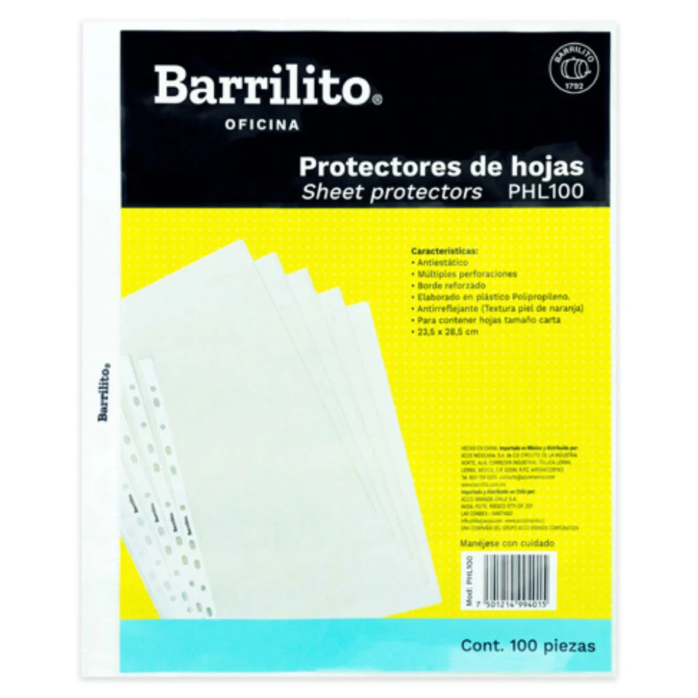 Protector de Hojas Barrilito PHL100 | Carta, Transparente, 100 Piezas