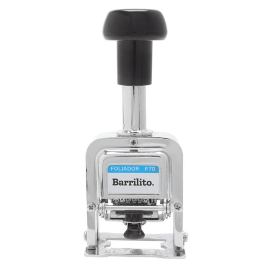 El Sello Foliador Metálico de 6 Dígitos F-70 Barrilito es perfecto para aplicaciones ligeras de foliado. Fabricado con acero templado, este sello robusto ofrece hasta 100.000 impresiones en formato de seis dígitos. Disfruta de acabado profesional y precisión de impresión con facilidad de uso.